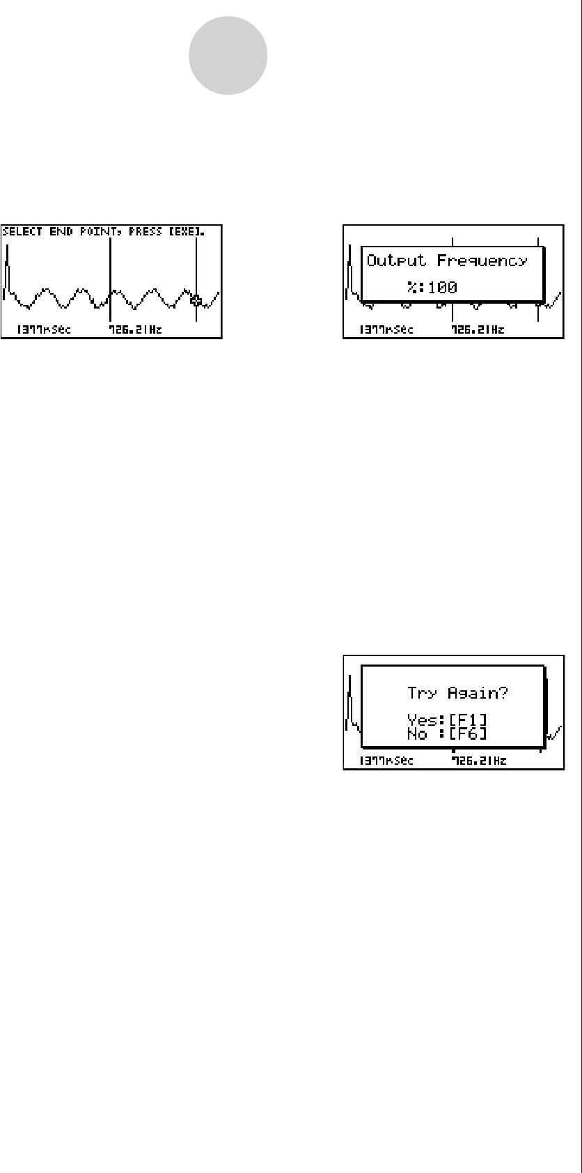 • Pressing 1(Yes) returns to the “Output Frequency” dialog box. From there, repeat the