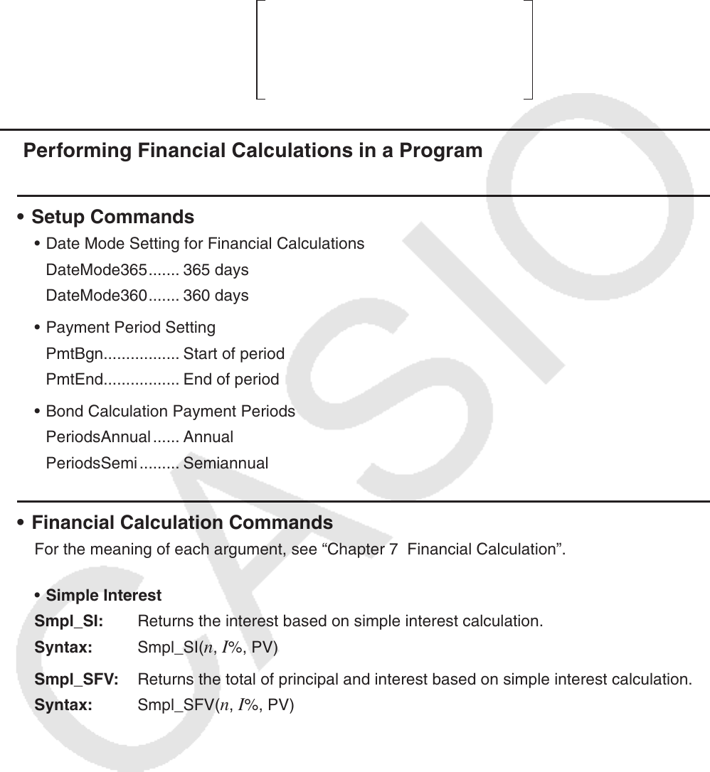 • Financial Calculation Commands