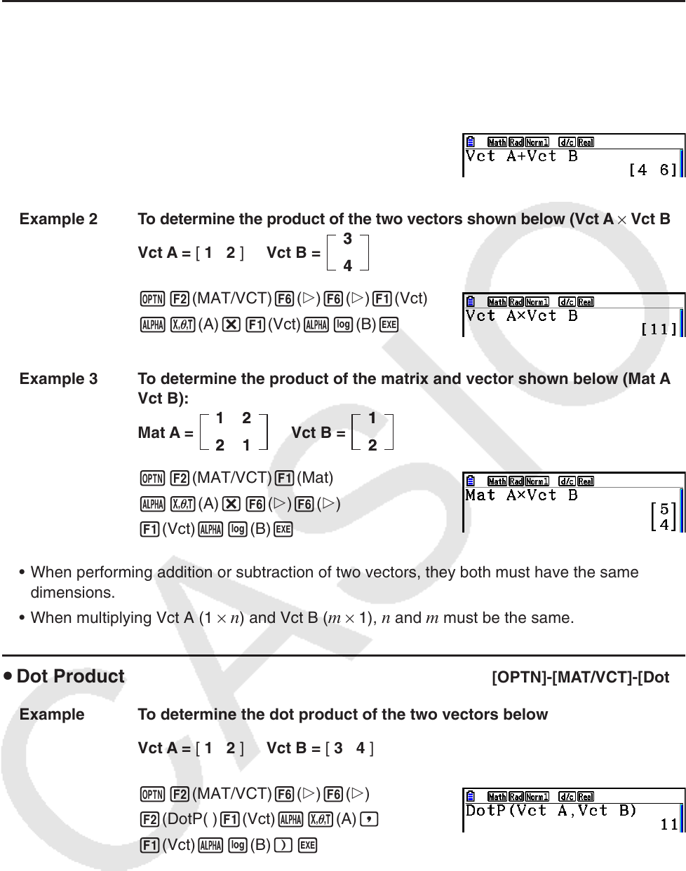 u Vector Addition, Subtraction, and Multiplication [OPTN]-[MAT/VCT]-[Vct]