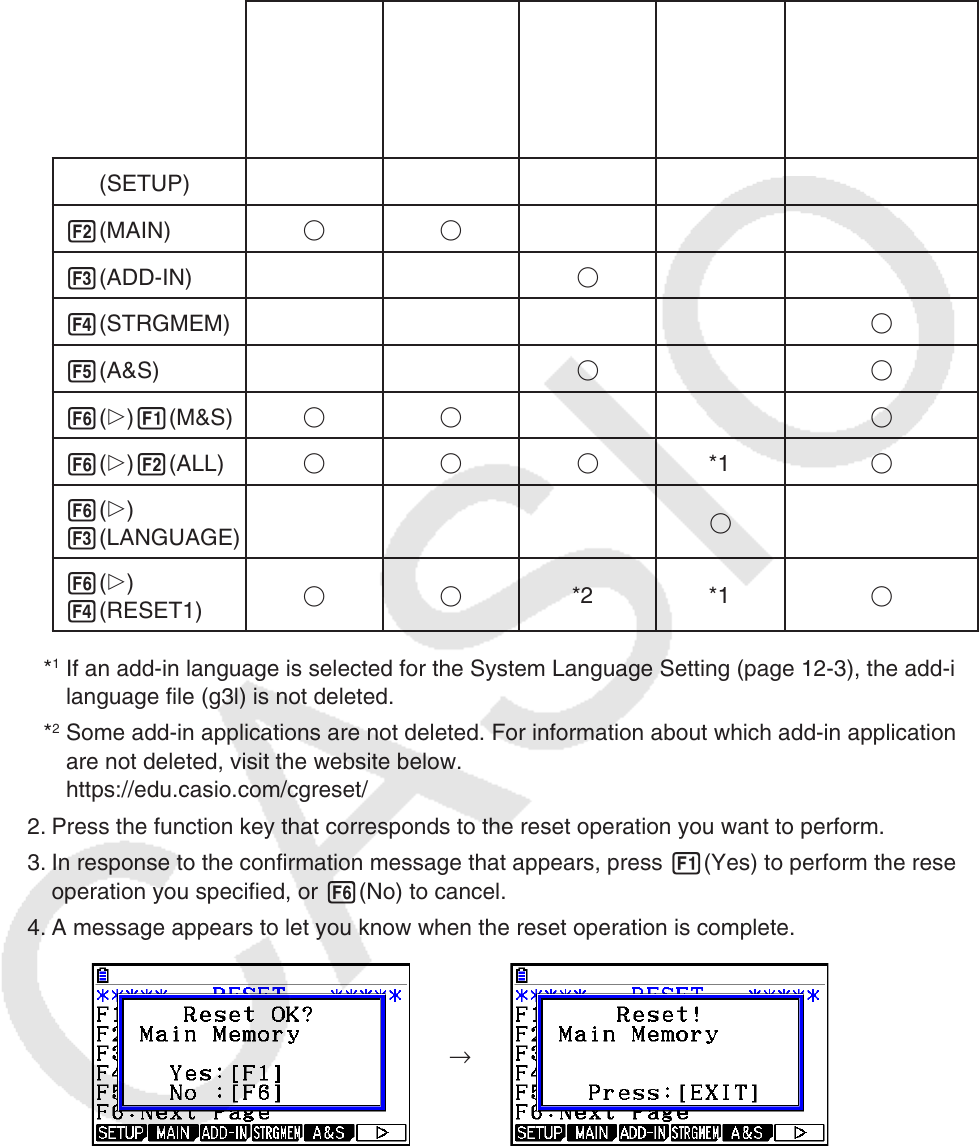 2. Press the function key that corresponds to the reset operation you want to perform.