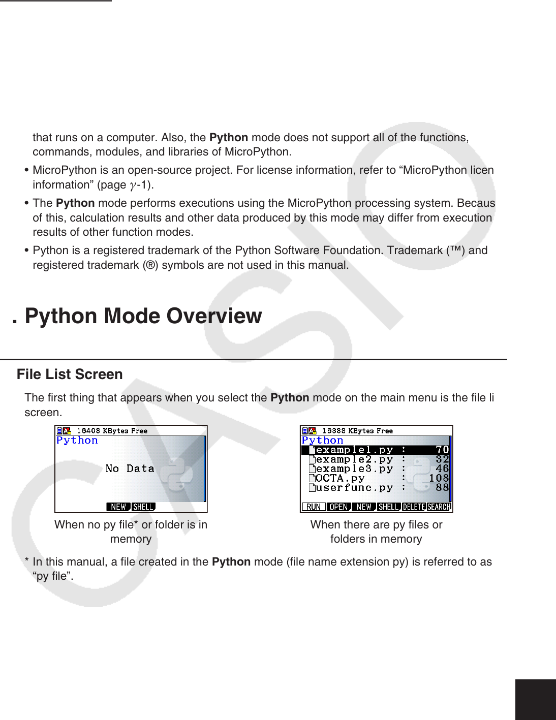 In this manual, a file created in the Python mode (file name extension py) is referred to as a