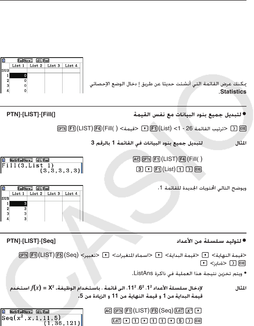 aK1(LIST) 3(Dim) 1(List) <1 - 26 ﺔﻤﺋﺎﻘﻟﺍ ﺐﻴﺗﺮﺗ> w ( n = 1 - 999)