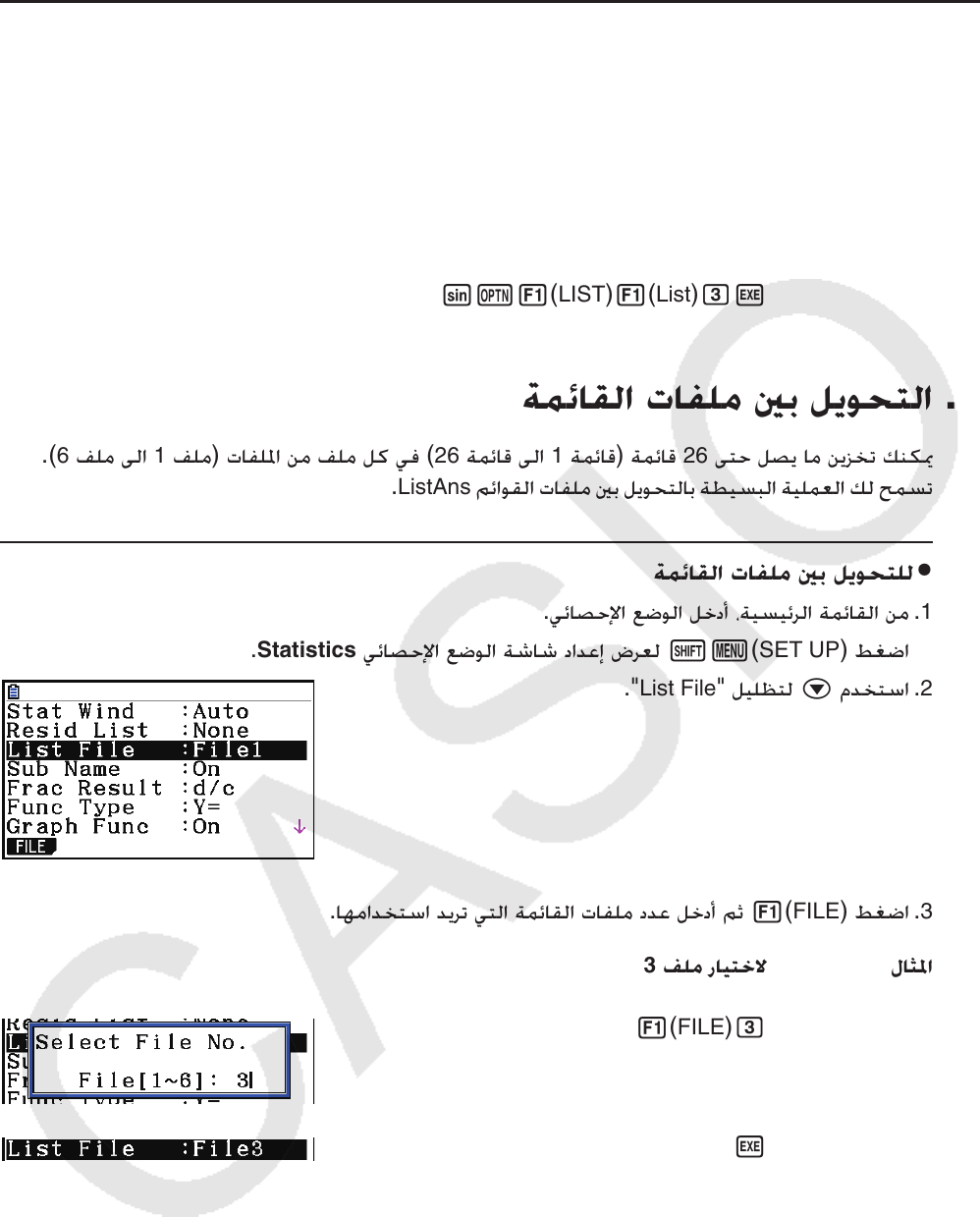 List 3) sin ﺀﺍﺮﺟﻹ (41, 65, 22) 3 ﺔﻤﺋﺎﻘﻟﺍ ﻡﺍﺪﺨﺘﺳﻻ ﻝﺎﺜﻣ