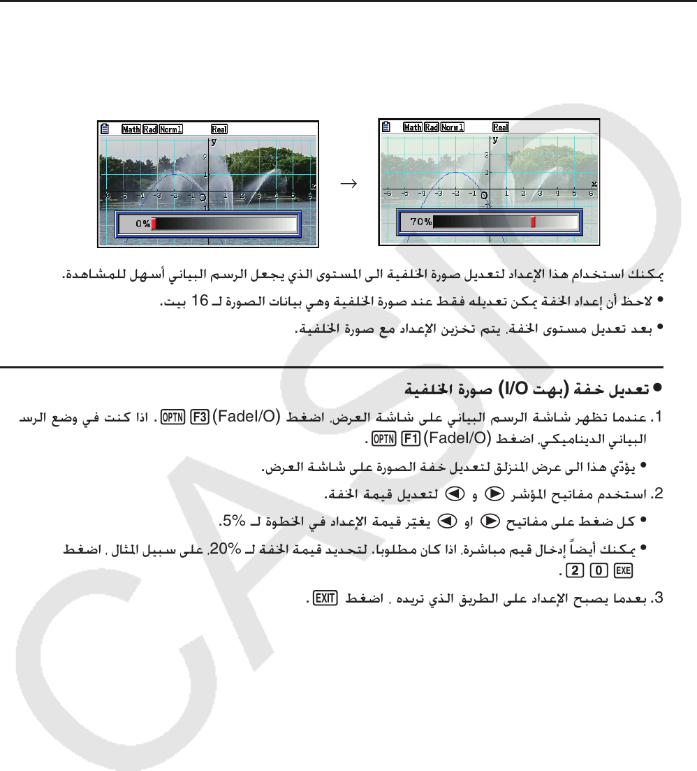 ﻢﺳﺮﻟﺍ ﻊﺿﻭ ﻲﻓ ﺖﻨﻛ ﺍﺫﺍ .K3(FadeI/O) ﻂﻐﺿﺍ ،ﺽﺮﻌﻟﺍ ﺔﺷﺎﺷ ﻰﻠﻋ ﻲﻧﺎﻴﺒﻟﺍ ﻢﺳﺮﻟﺍ ﺔﺷﺎﺷ ﺮﻬﻈﺗ ﺎﻣﺪﻨﻋ .1