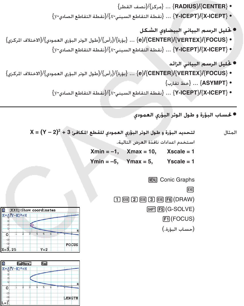 {ﻱﺰﻛﺮﳌﺍ ﻑﻼﺘﺧﻻﺍ}/{ﻱﺩﻮﻤﻌﻟﺍ ﻱﺭﺆﺒﻟﺍ ﺮﺗﻮﻟﺍ ﻝﻮﻃ}/{ﺱﺃﺭ}/{ﺓﺭﺆﺑ} ... { e } / { LENGTH } / { VERTEX } / { FOCUS } •