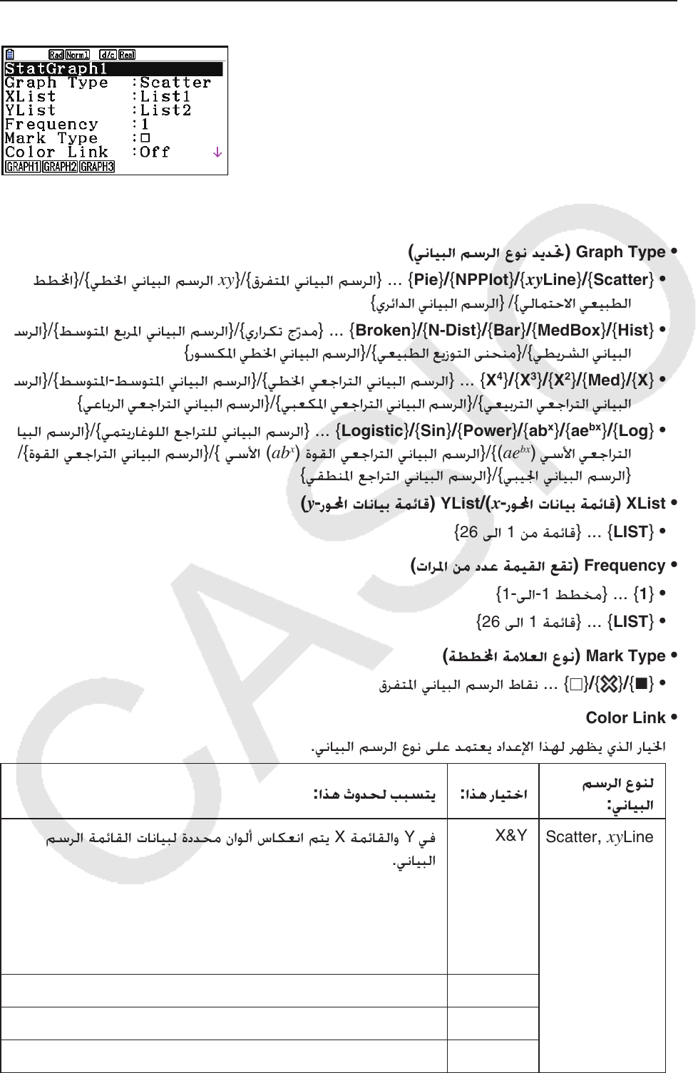 ﺔﻣﺎﻌﻟﺍ ﺕﺍﺩﺍﺪﻋﻹﺍ ﺔﺷﺎﺷ ﺽﺮﻌﺗ 1(GRAPH) 6(SET) ﻰﻠﻋ ﻂﻐﻀﻟﺎﺑ
