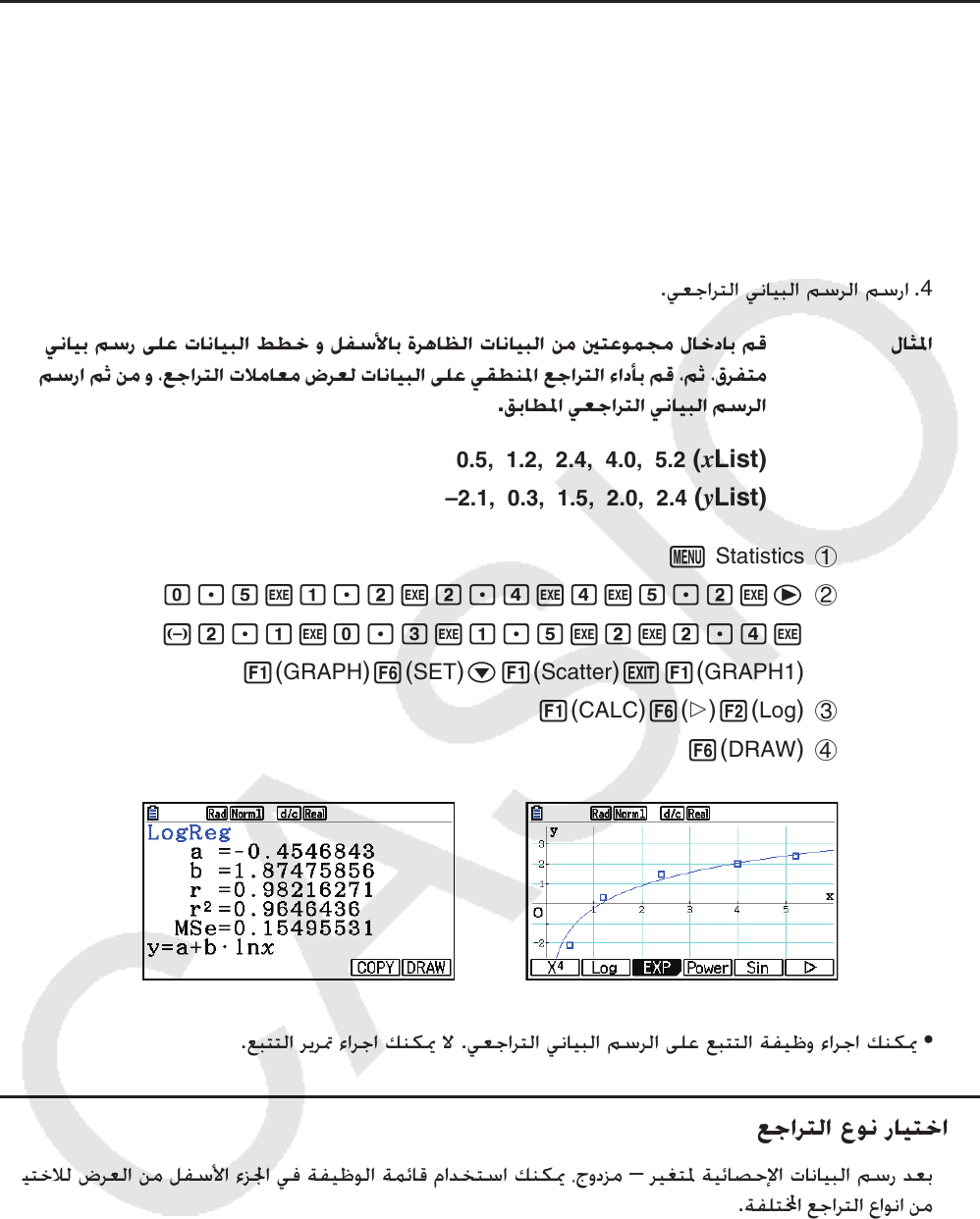 - 3. القيام بعملية حسابية و رسم بياني للبيانات الإحصائية لمتغير - مزدوج (توفيق المنحنيات)