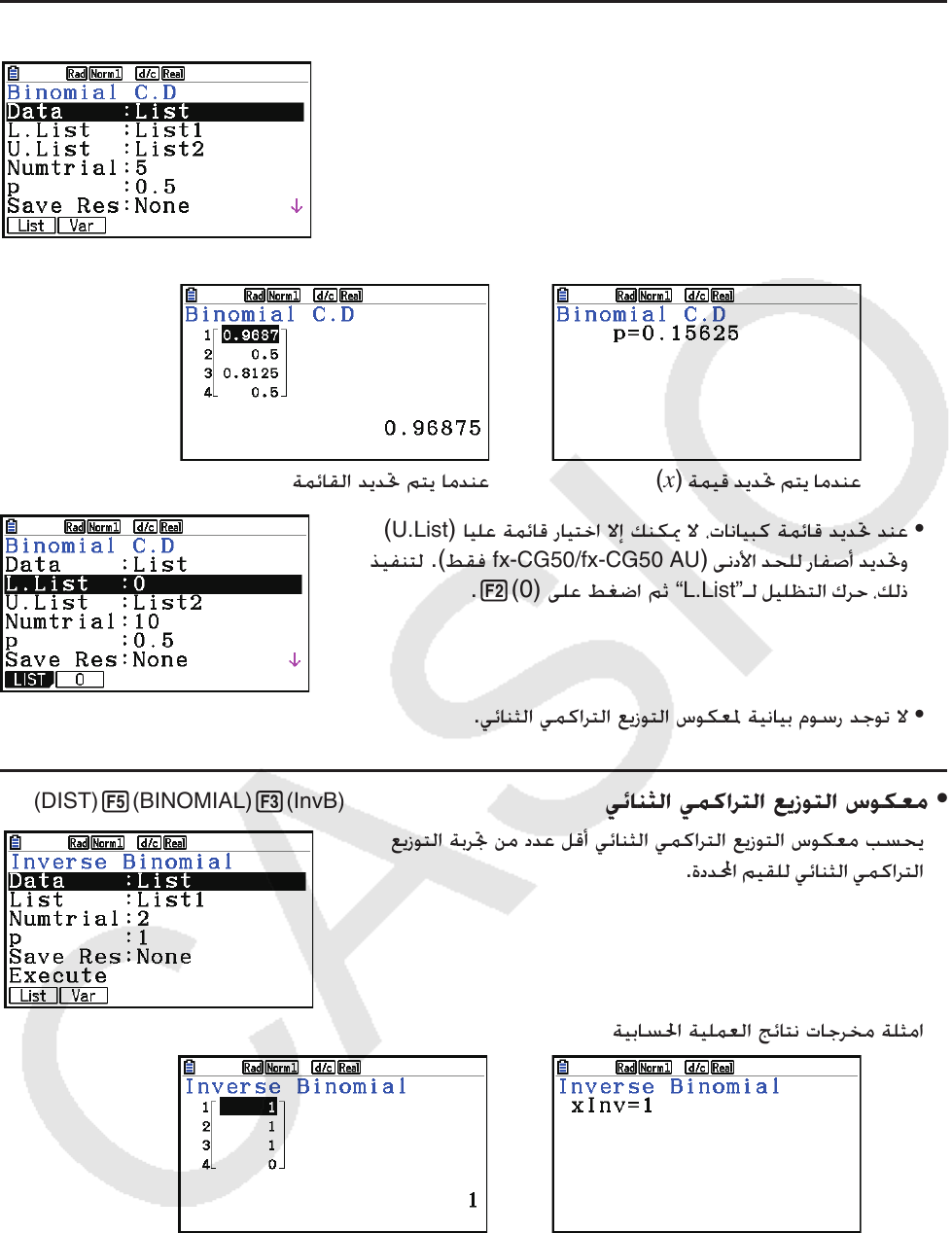 5(DIST) 5(BINOMIAL) 3(InvB) ﻲﺋﺎﻨﺜﻟﺍ ﻲﻤﻛﺍﺮﺘﻟﺍ ﻊﻳﺯﻮﺘﻟﺍ ﺱﻮﻜﻌﻣ •