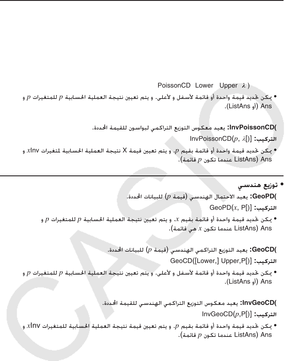 PoissonPD(x, λ[)] :ﺐﻴﻛﺮﺘﻟﺍ