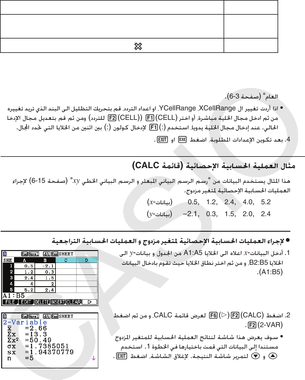 ﻂﻐﺿﺍ ﻢﺛ ﻦﻣ ﻭ ،CALC ﺔﻤﺋﺎﻗ ﺽﺮﻌﻟ 6( g) 2(CALC) ﻂﻐﺿﺍ .2