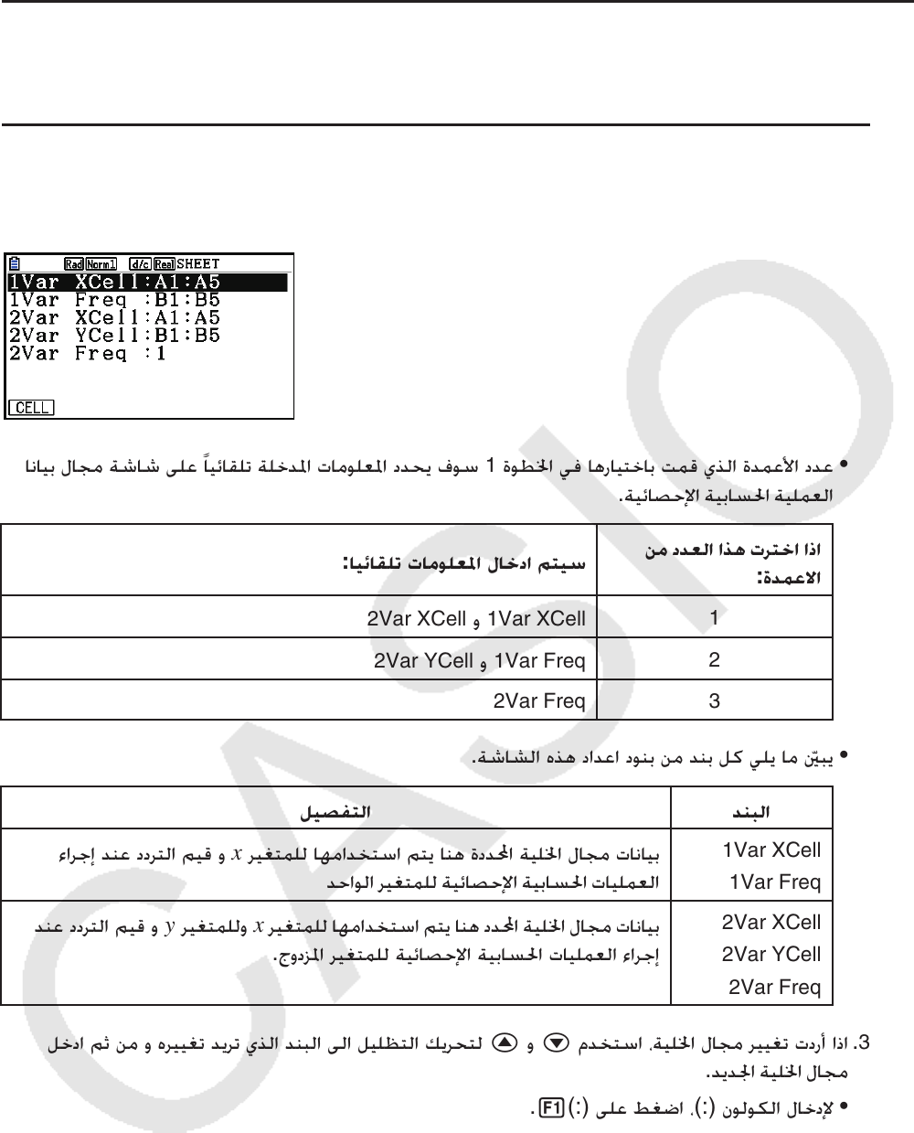 2Var YCell ،2Var XCell ،1Var XCell ﺔﻟﺎﳊﺍ ﻲﻓ) 1(CELL) ﻂﻐﺿﺍ ،ﺎﻴﻟﺎﺣ ﻝﺎﺧﺩﻹﺍ ﺔﻴﻠﺧ ﻝﺎﺠﻣ ﻞﻳﺪﻌﺘﻟ •