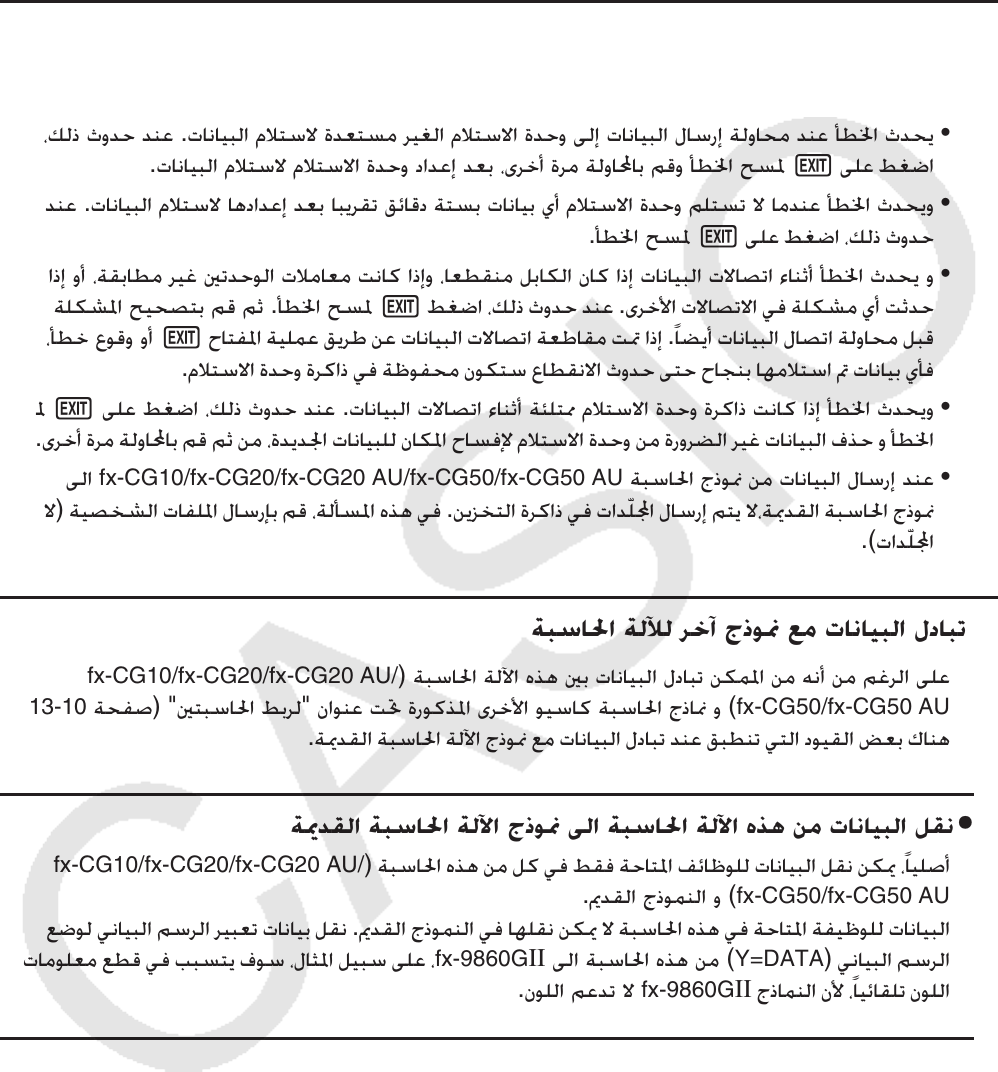fx-CG10/fx-CG20/fx-CG20 AU/) ﺔﺒﺳﺎﳊﺍ ﺔﻟﻵﺍ ﻩﺬﻫ ﲔﺑ ﺕﺎﻧﺎﻴﺒﻟﺍ ﻝﺩﺎﺒﺗ ﻦﻜﻤﳌﺍ ﻦﻣ ﻪﻧﺃ ﻦﻣ ﻢﻏﺮﻟﺍ ﻰﻠﻋ