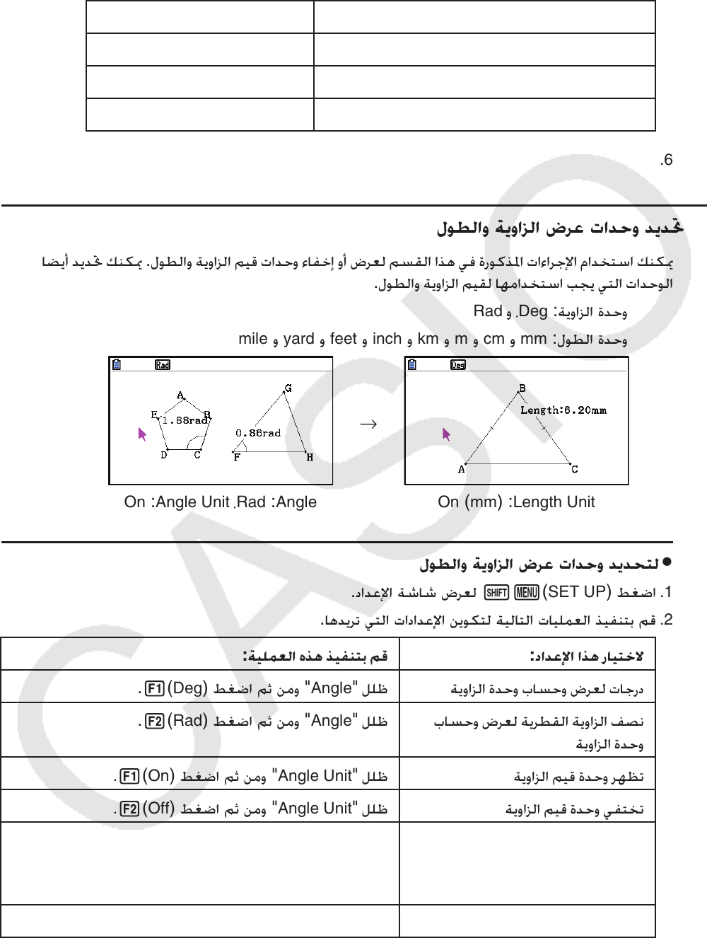 Rad ﻭ ،Deg :ﺔﻳﻭﺍﺰﻟﺍ ﺓﺪﺣﻭ