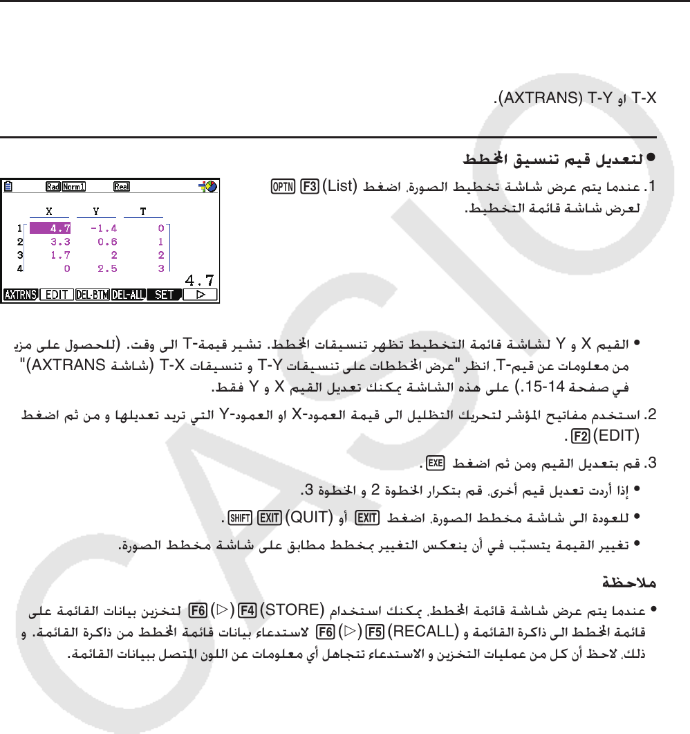 T-ﺔﻤﻴﻗ ﺮﻴﺸﺗ .ﻂﻄﺍ ﺕﺎﻘﻴﺴﻨﺗ ﺮﻬﻈﺗ ﻂﻴﻄﺨﺘﻟﺍ ﺔﻤﺋﺎﻗ ﺔﺷﺎﺸﻟ Y ﻭ X ﻢﻴﻘﻟﺍ •