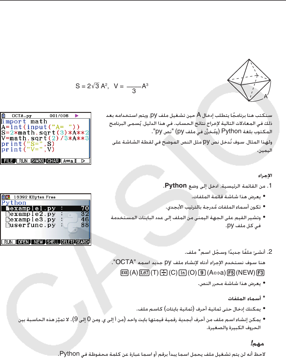 - الفصل السابع عشر Python (لـ fx-CG50، وfx-CG50 AU فقط)