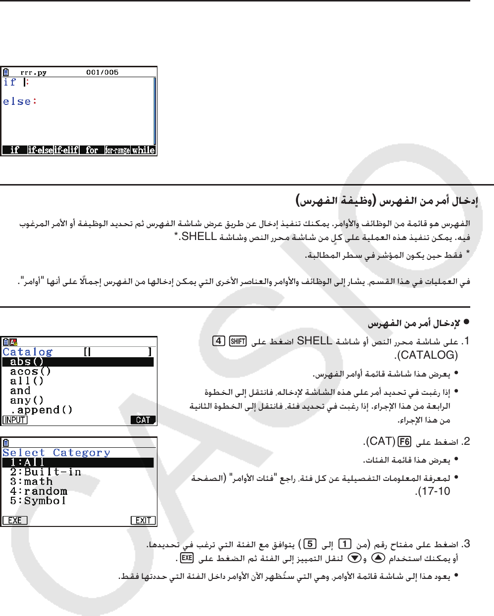 - الفصل السابع عشر Python (لـ fx-CG50، وfx-CG50 AU فقط)