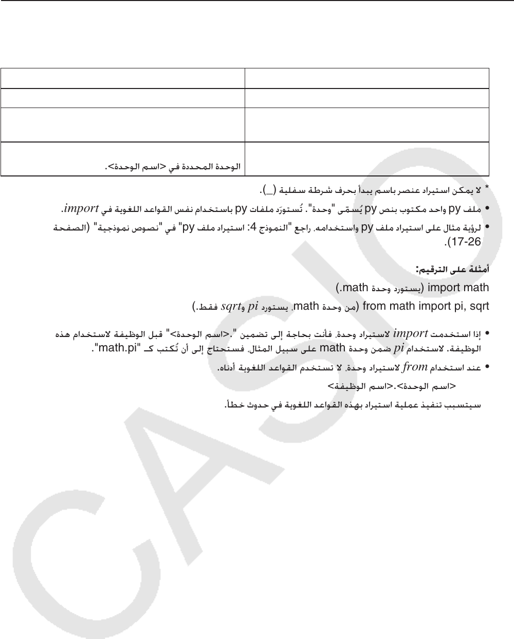 - الفصل السابع عشر Python (لـ fx-CG50، وfx-CG50 AU فقط)