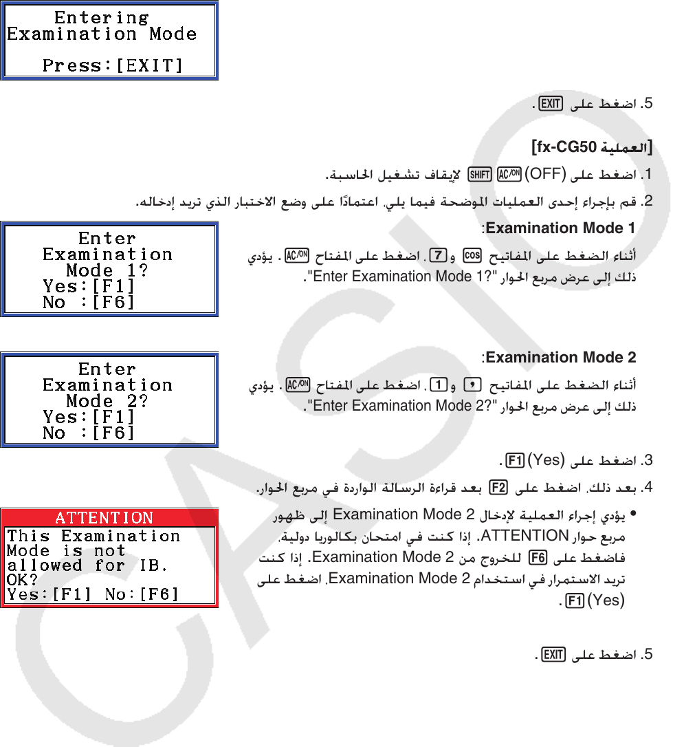 Examination Mode 2 ﻦﻣ ﺝﻭﺮﺨﻠﻟ 6 ﻰﻠﻋ ﻂﻐﺿﺎﻓ