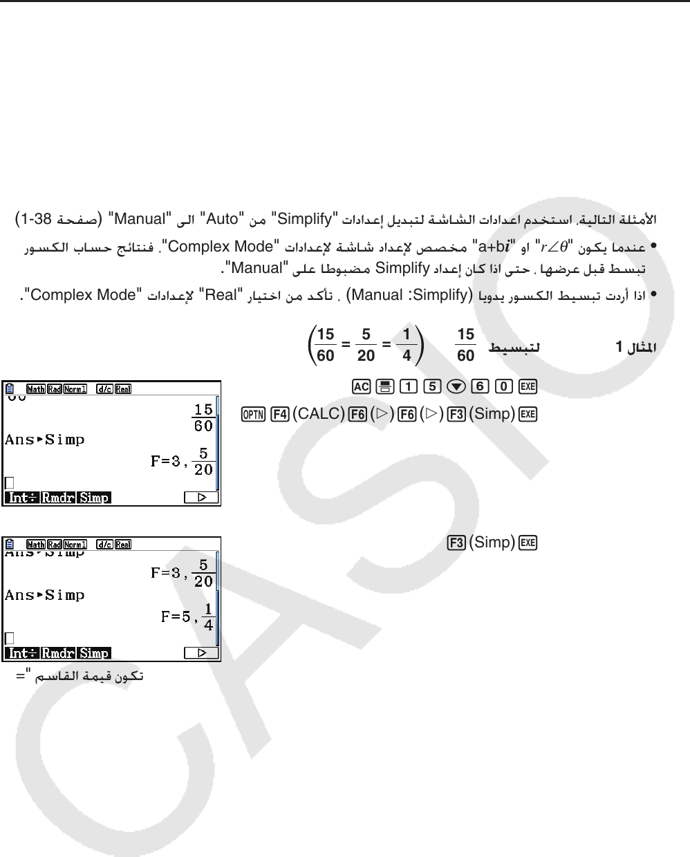 Complex Mode" ﺕﺍﺩﺍﺪﻋﻹ "Real" ﺭﺎﻴﺘﺧﺍ ﻦﻣ ﺪﻛﺄﺗ ، (Manual :Simplify) ﺎﻳﻭﺪﻳ ﺭﻮﺴﻜﻟﺍ ﻂﻴﺴﺒﺗ ﺕﺩﺭﺃ ﺍﺫﺍ •