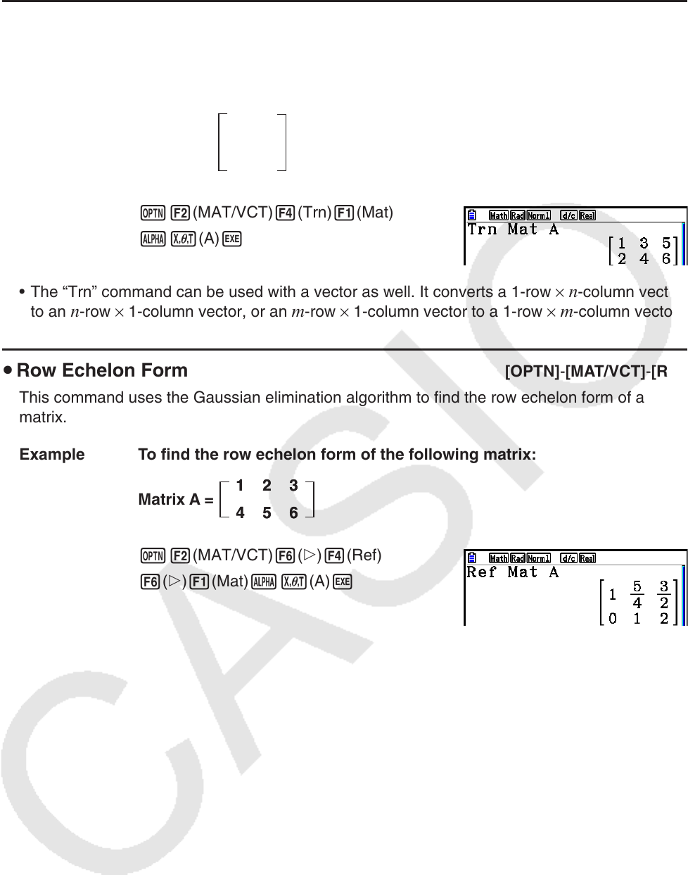 u Row Echelon Form [OPTN] - [MAT/VCT] - [Ref]