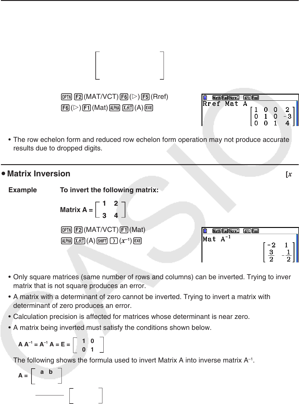 u Reduced Row Echelon Form [OPTN] - [MAT/VCT] - [Rref]