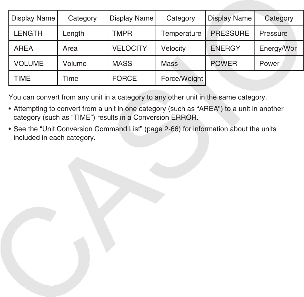 • See the “Unit Conversion Command List” (page 2-66) for information about the units