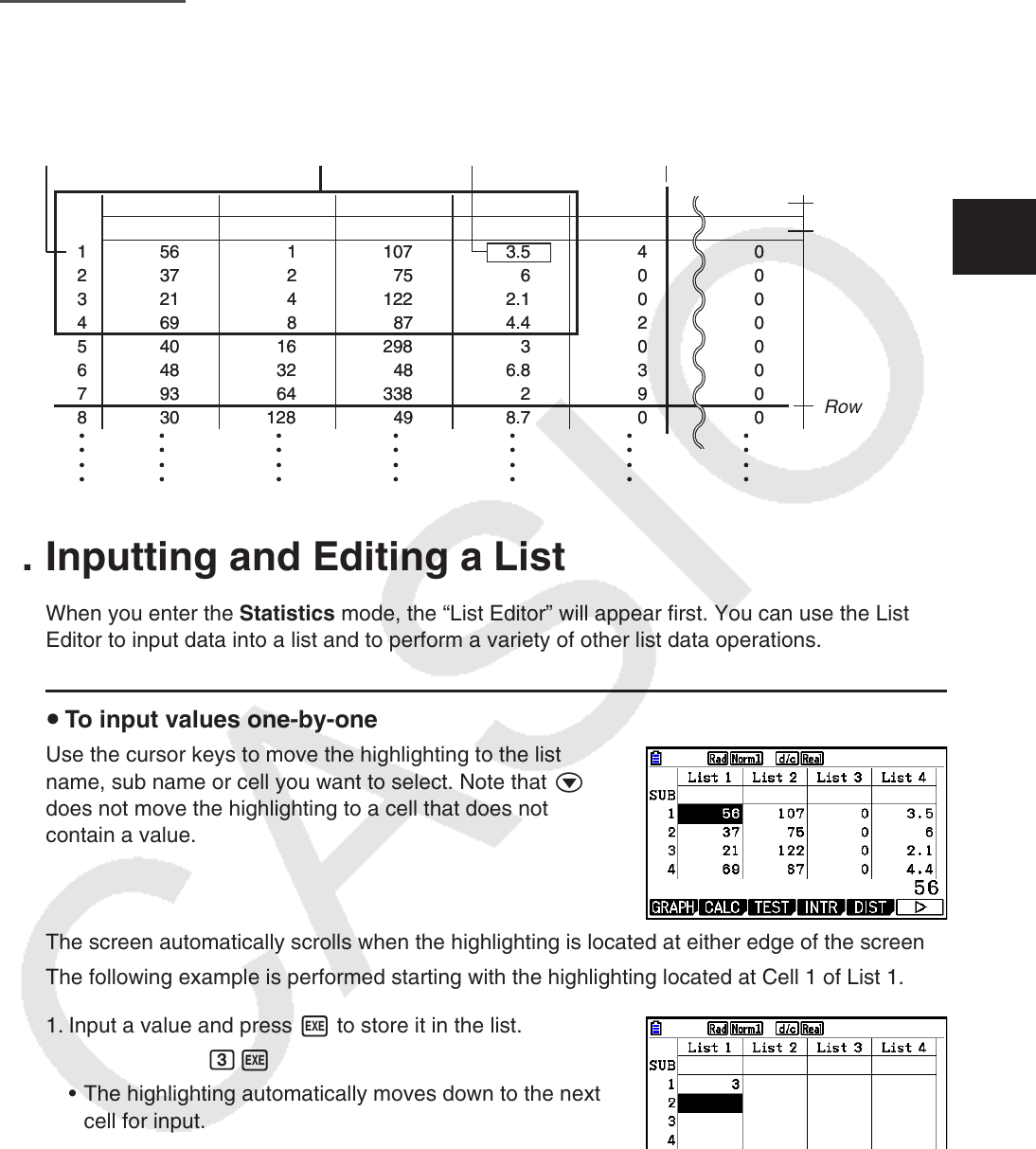 When you enter the Statistics mode, the “List Editor” will appear first. You can use the List
