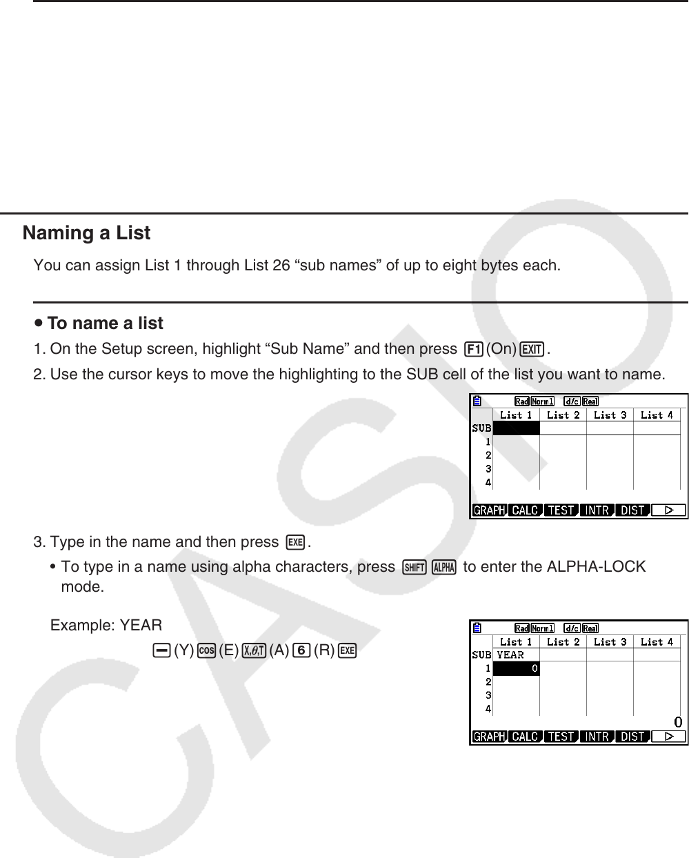 You can assign List 1 through List 26 “sub names” of up to eight bytes each.