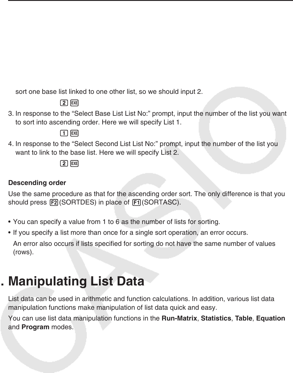 • If you specify a list more than once for a single sort operation, an error occurs.