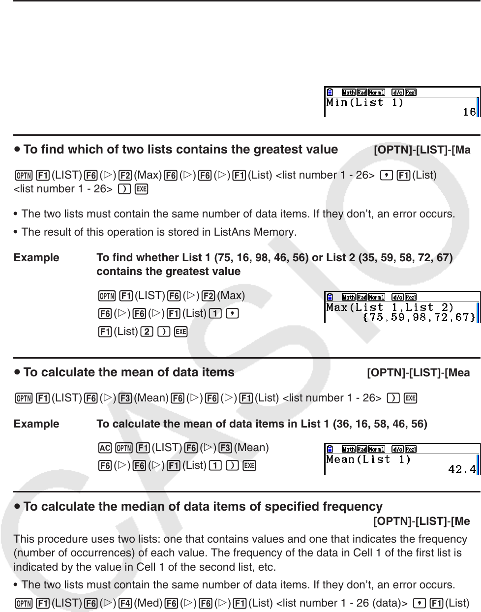 u To find the minimum value in a list [OPTN] - [LIST] - [Min]