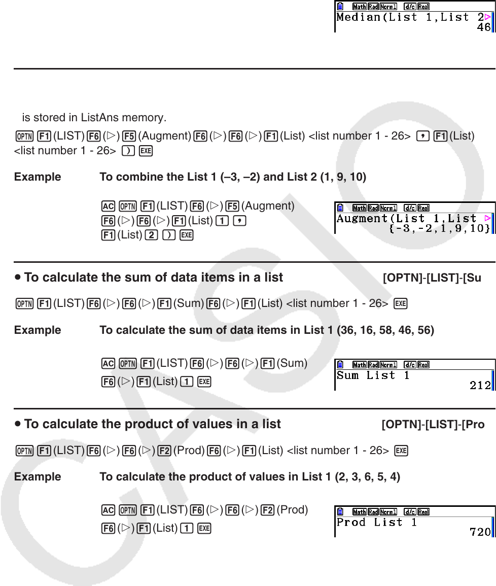 u To combine lists [OPTN] - [LIST] - [Augment]