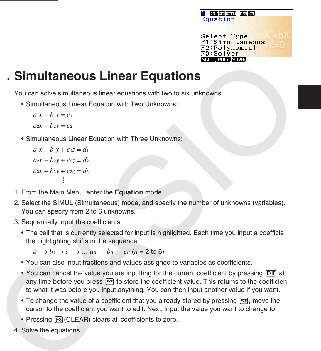 • { SIMUL } ... {linear equation with 2 to 6 unknowns}