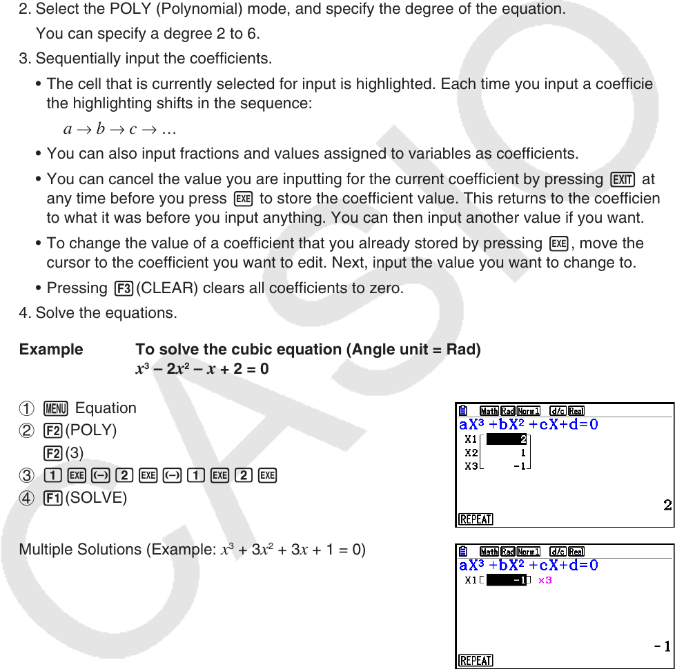 Example To solve the cubic equation (Angle unit = Rad)