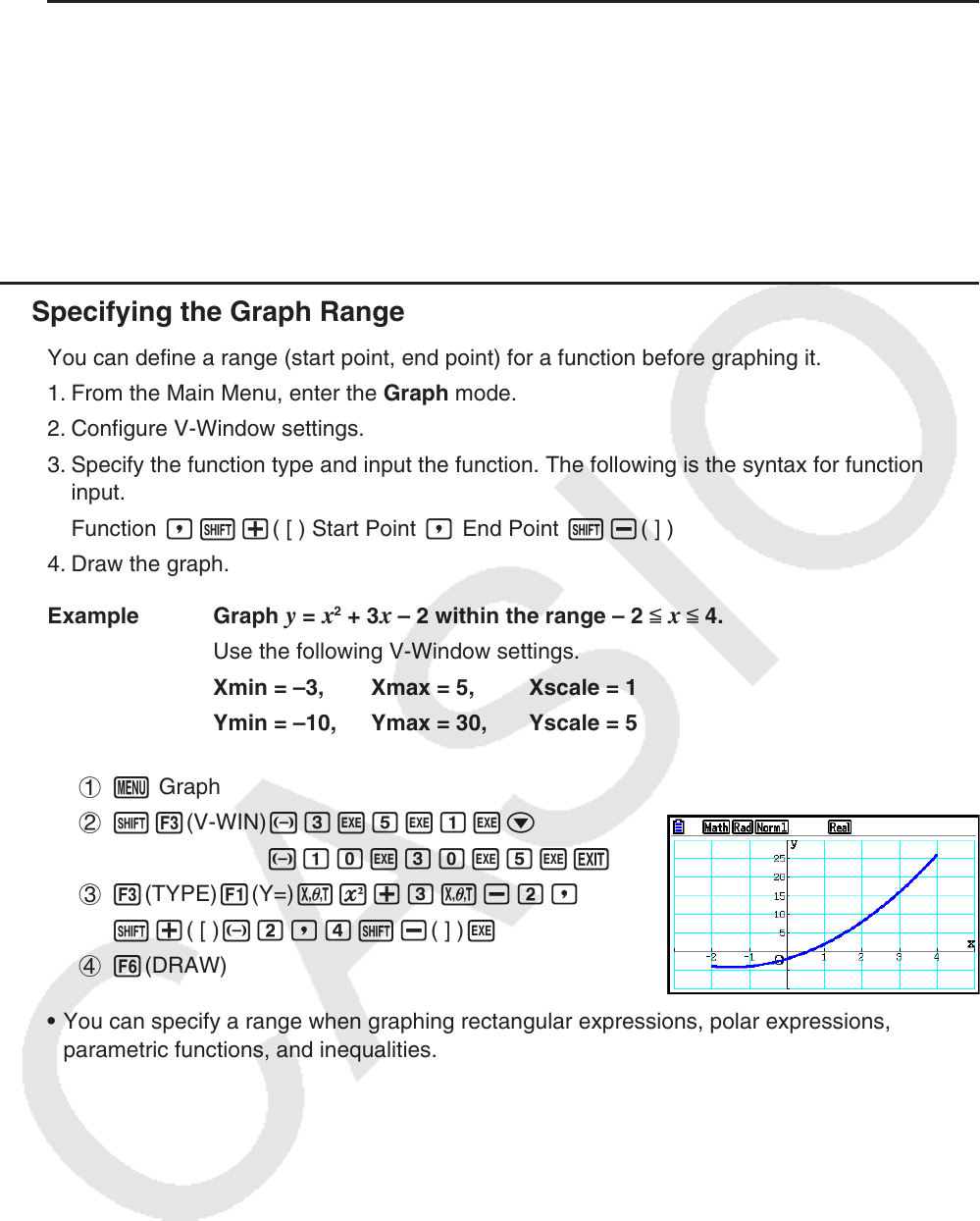 • You can specify a range when graphing rectangular expressions, polar expressions,