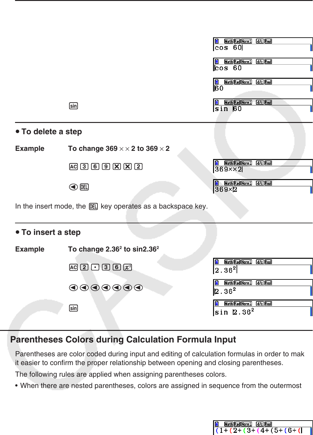 Parentheses are color coded during input and editing of calculation formulas in order to make