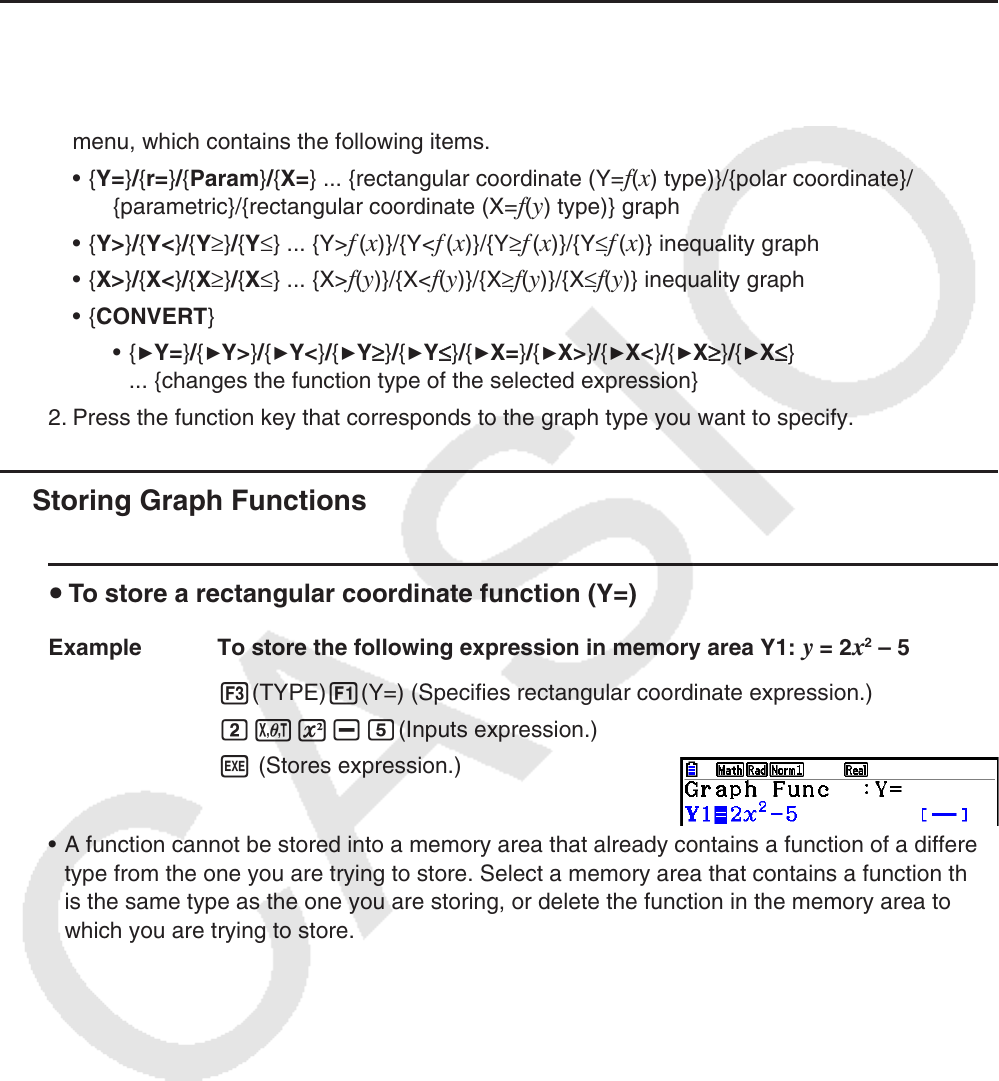 1. While the graph relation list is on the display, press 3(TYPE) to display the graph type