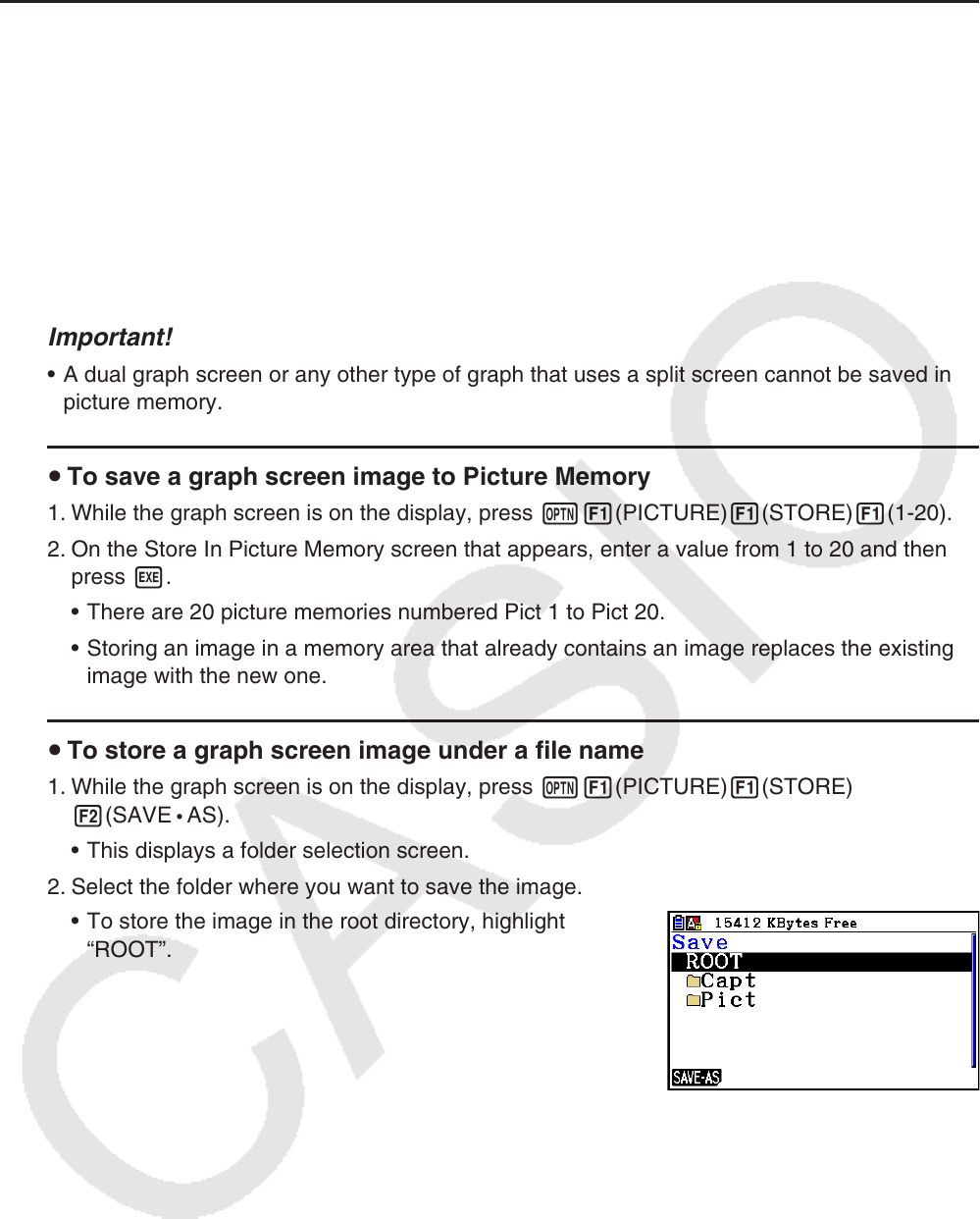 1. While the graph screen is on the display, press K1(PICTURE)1(STORE)1(1-20).