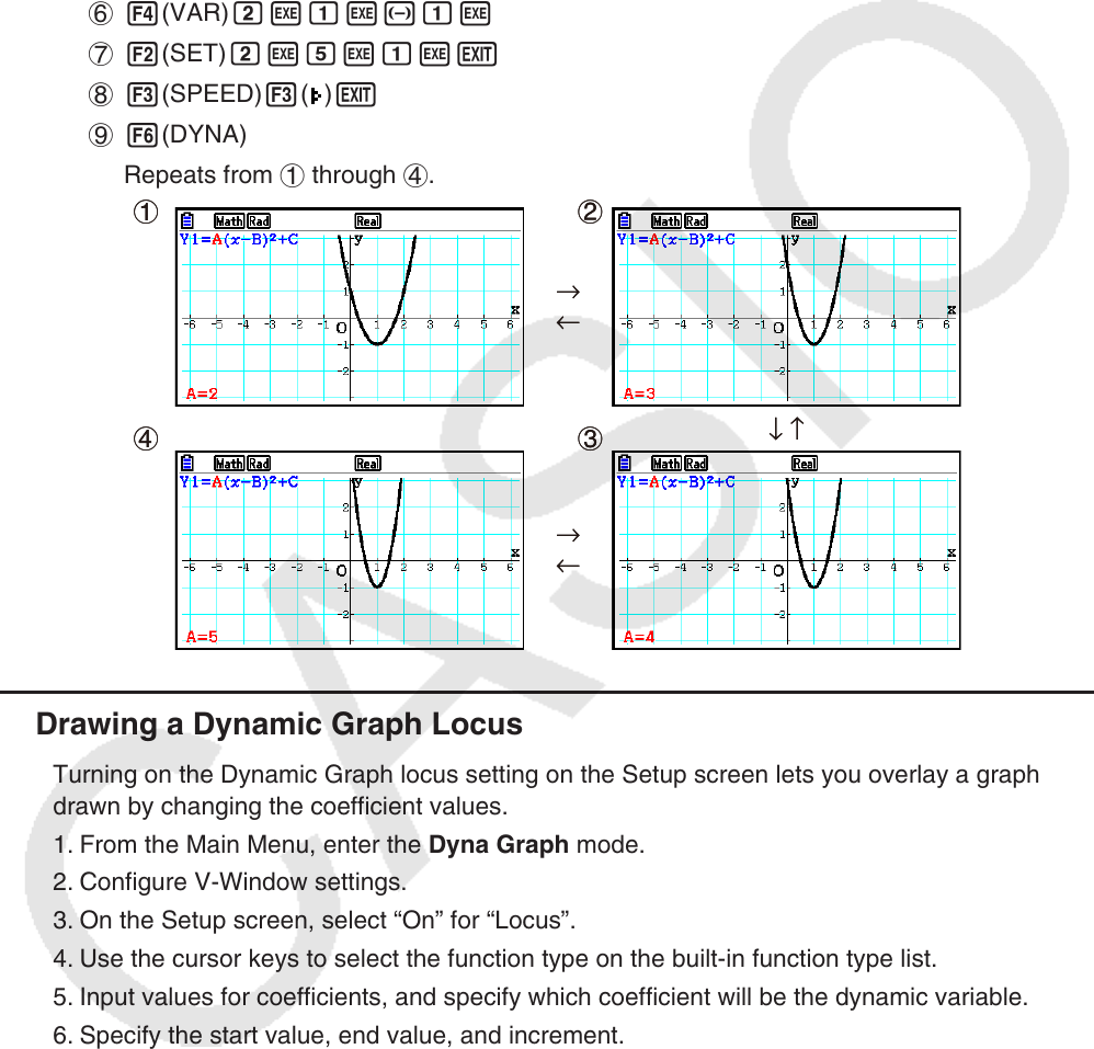 Turning on the Dynamic Graph locus setting on the Setup screen lets you overlay a graph