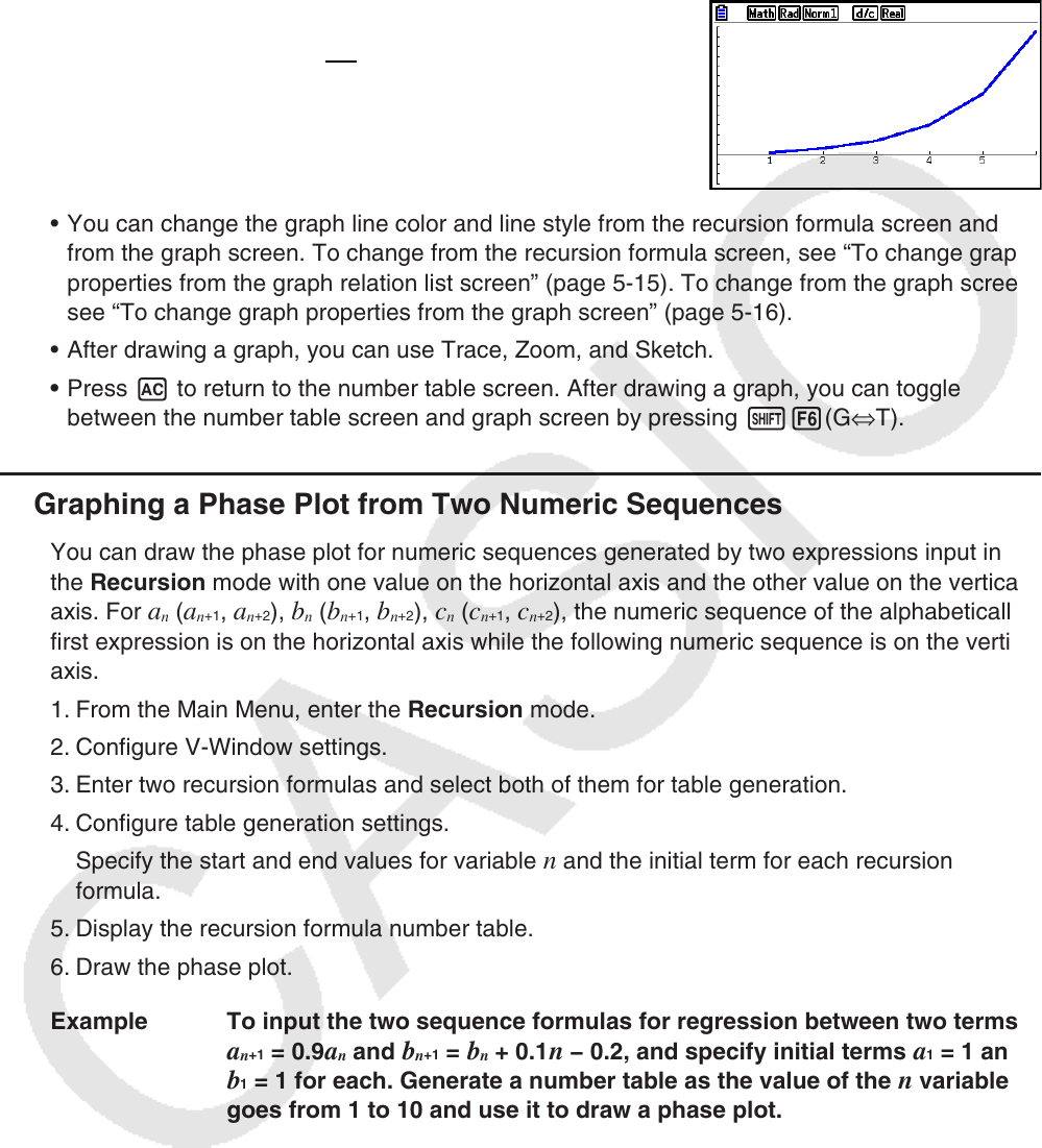 from the graph screen. To change from the recursion formula screen, see “To change graph