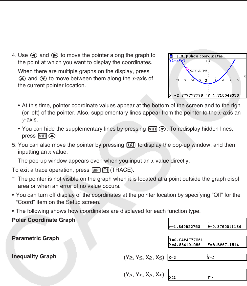Trace lets you move a pointer along a graph and read out coordinates on the display.