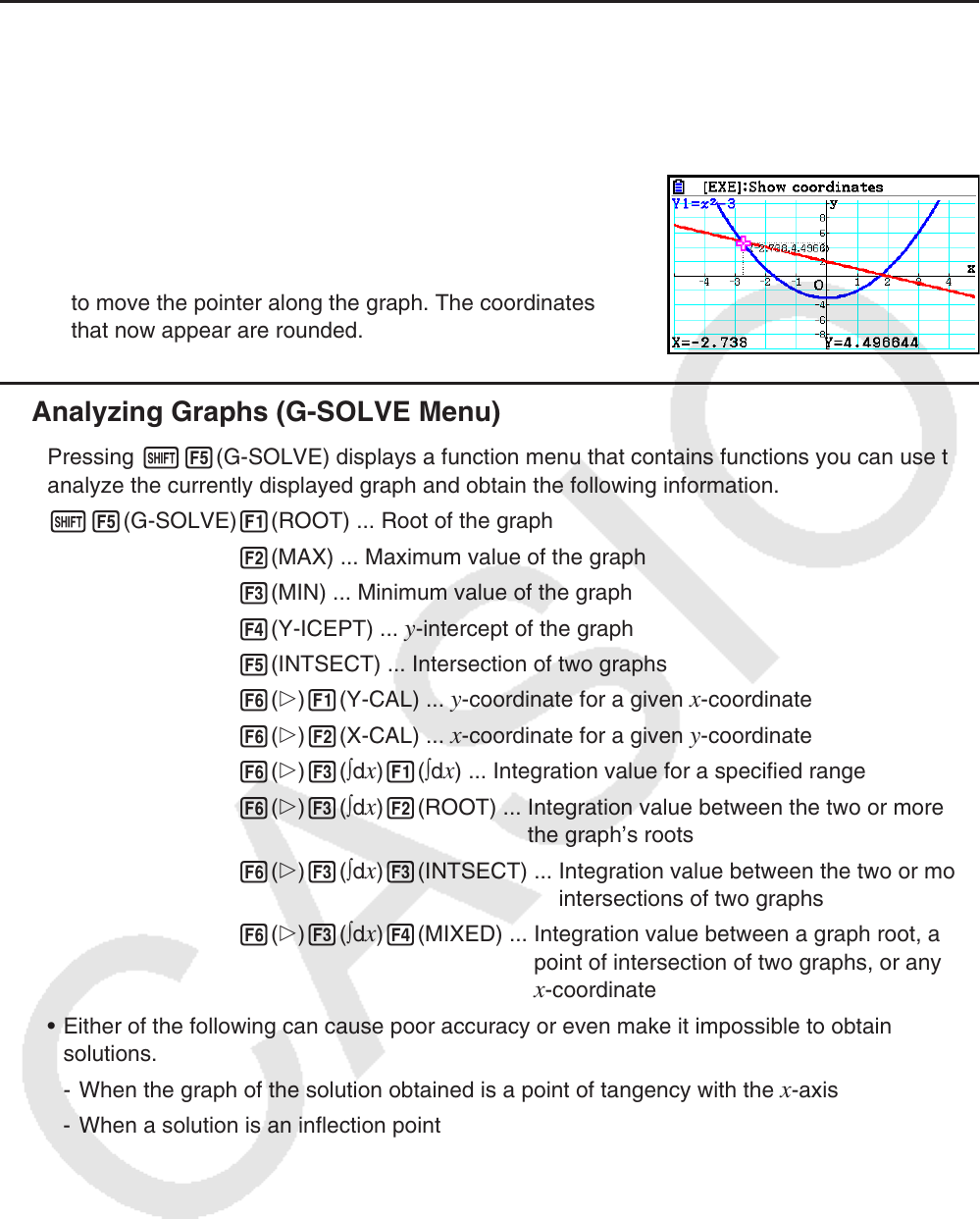 Pressing !5(G-SOLVE) displays a function menu that contains functions you can use to