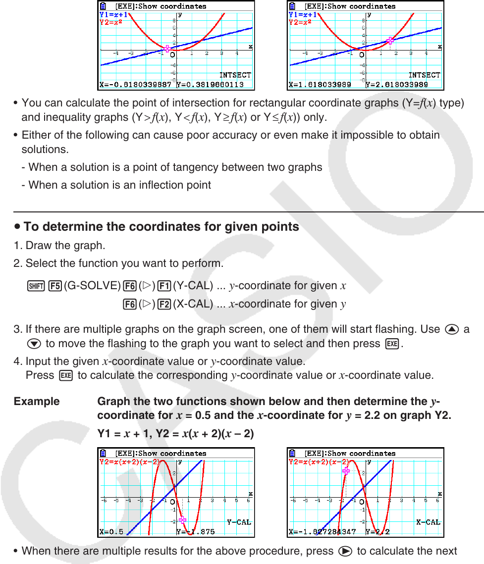 • You can calculate the point of intersection for rectangular coordinate graphs (Y=