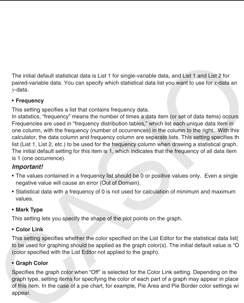 calculator, the data column and frequency column are separate lists. This setting specifies the
