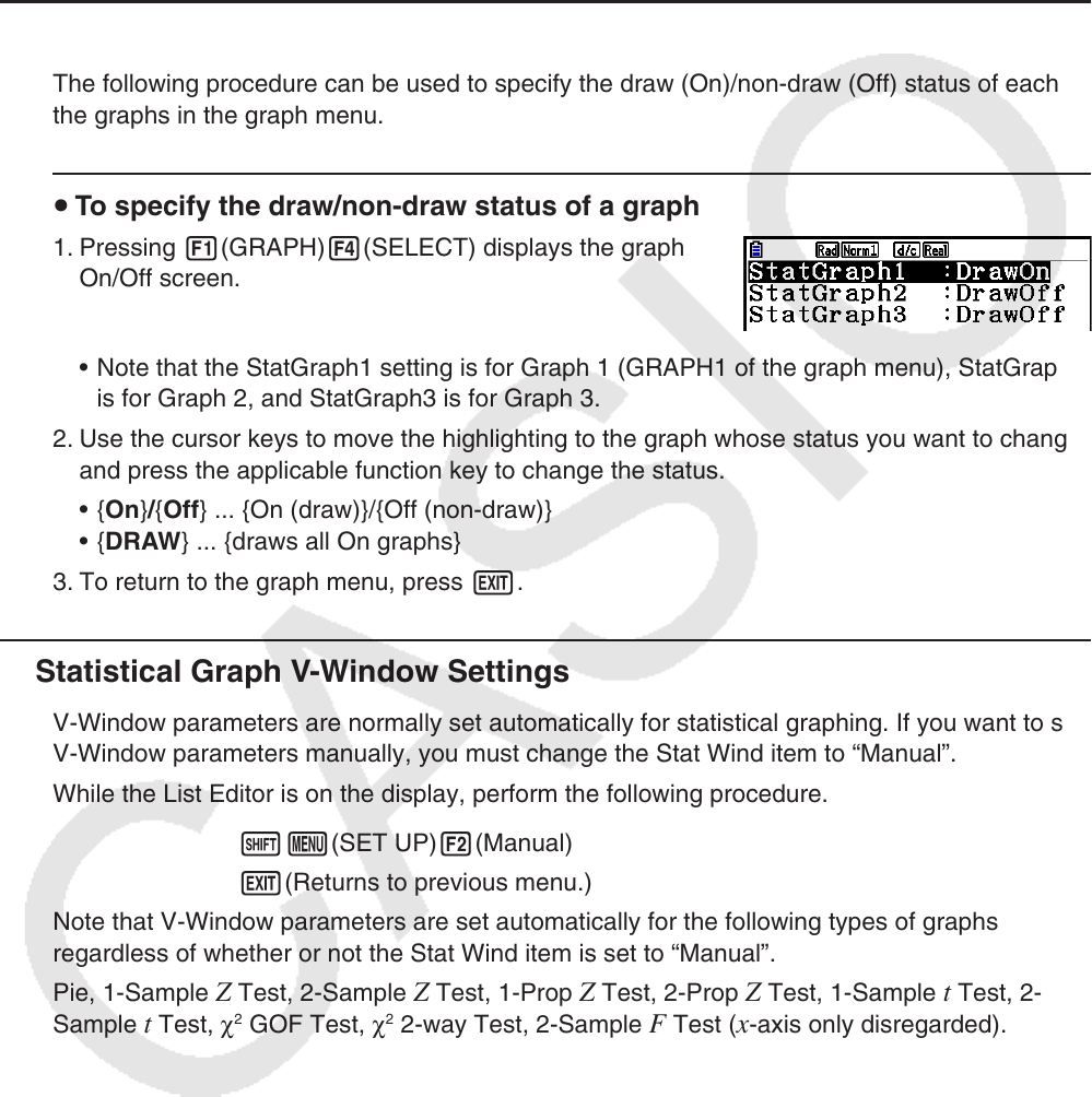 • Note that the StatGraph1 setting is for Graph 1 (GRAPH1 of the graph menu), StatGraph2