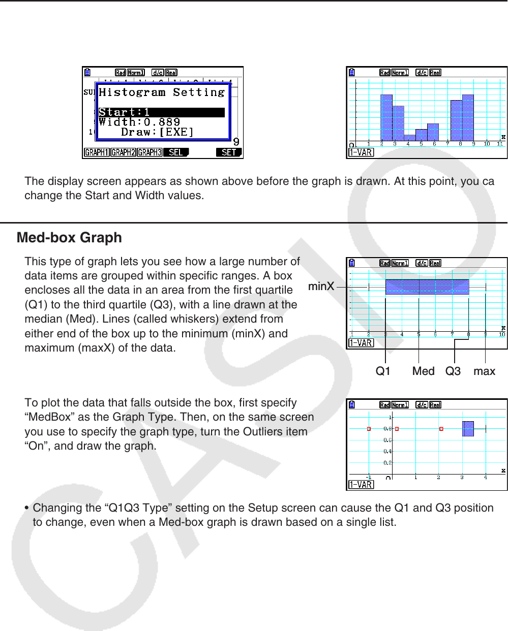 • Changing the “Q1Q3 Type” setting on the Setup screen can cause the Q1 and Q3 positions