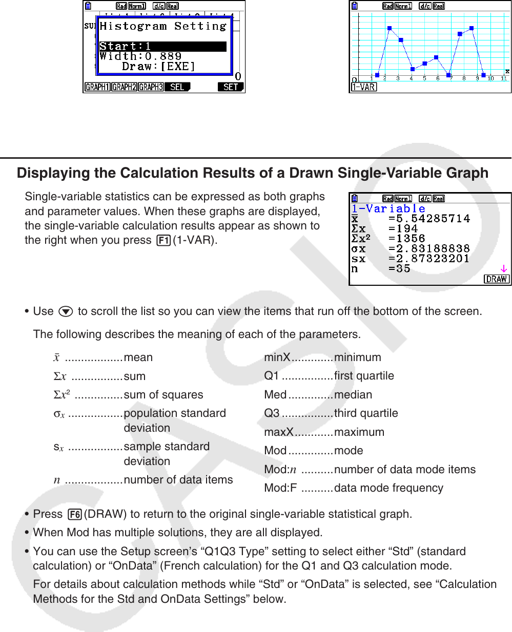 • Press 6(DRAW) to return to the original single-variable statistical graph.