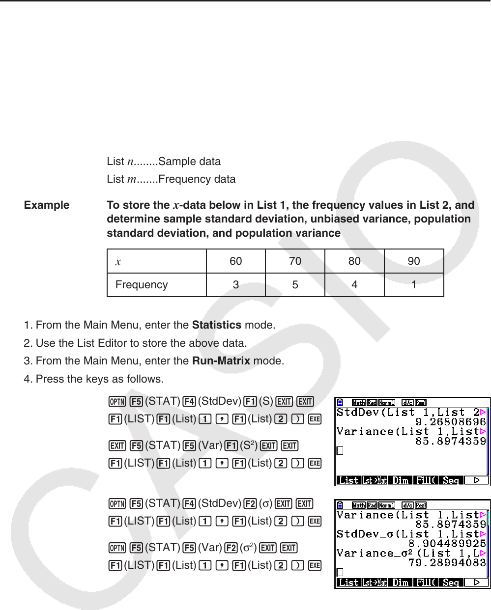 list (List 1 to List 26) with the Statistics mode List Editor or list data you input directly on the