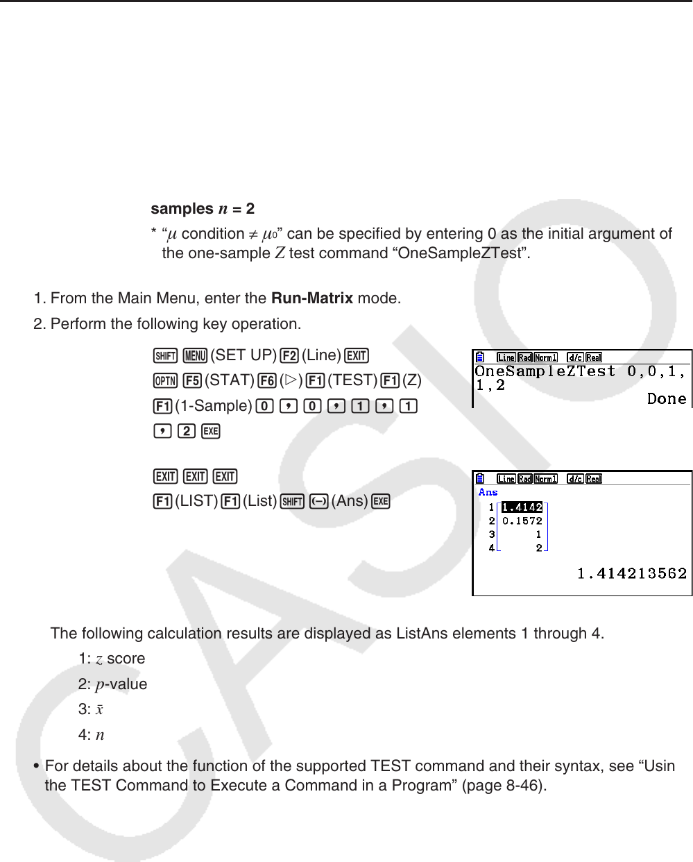 calculations that are the same as the Statistics mode Z Test, t Test, and other test