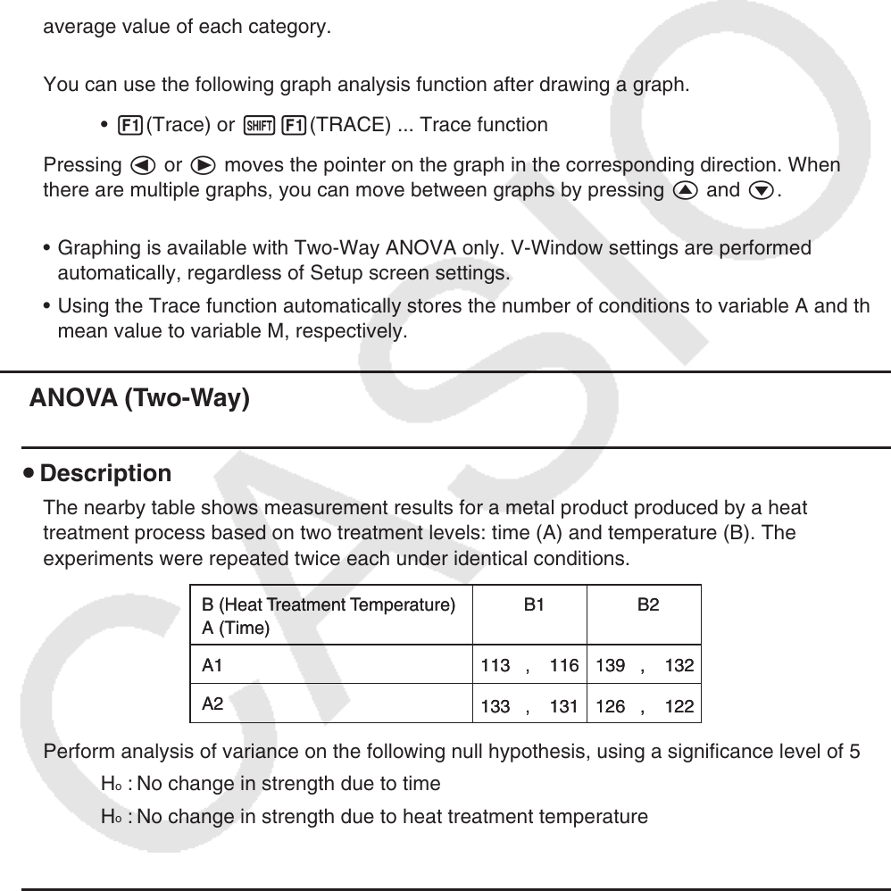 • Graphing is available with Two-Way ANOVA only. V-Window settings are performed