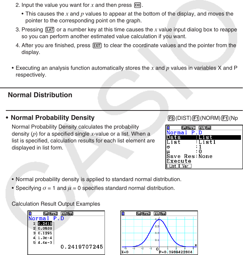 a particular x value. The P-CAL function can be used only after a Normal Probability Density,